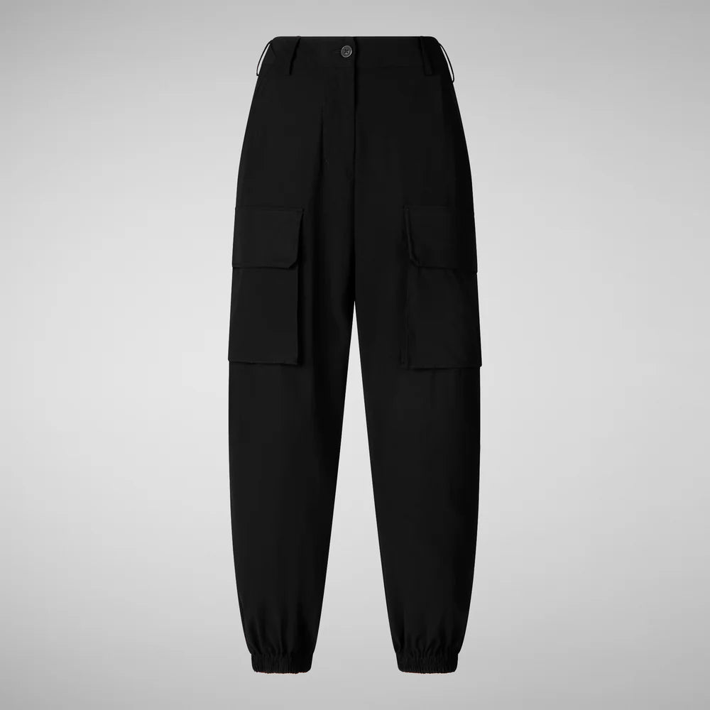 I pantaloni Gosy vestono freschi e comodi anche nelle giornate più calde grazie al tessuto ultrasottile antipiega e four-way stretch. Chiusi in vita da zip e bottone hanno elastico alle caviglie tasche laterali e due maxi tasche cargo con bottoni a pressione. Il logo Save The Duck in rilievo firma la patta della tasca sinistra.